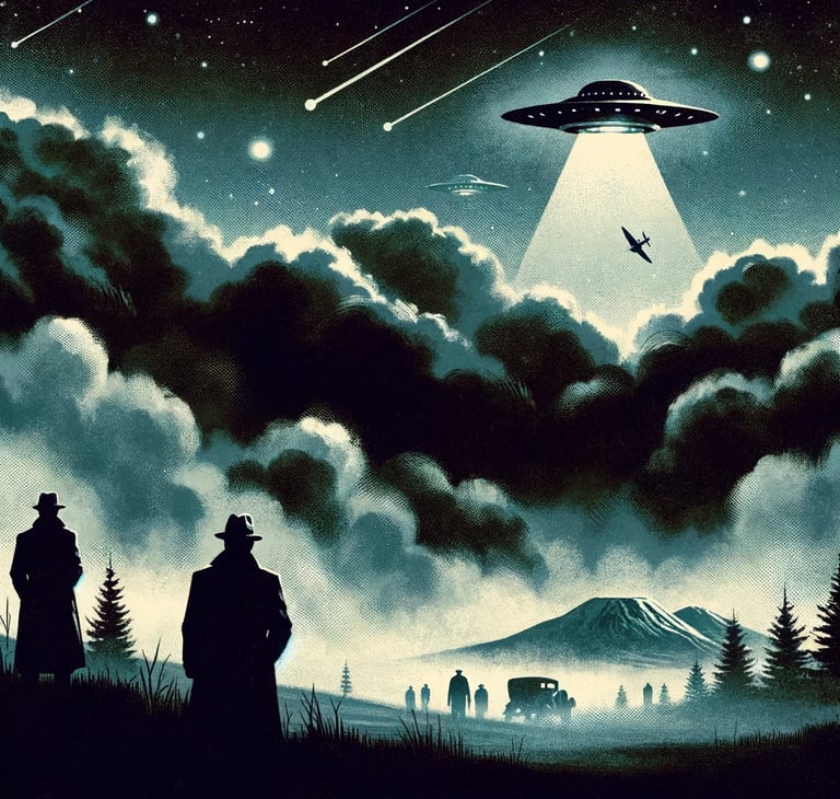 Nel cuore oscuro degli anni '40, sotto un cielo increspato di misteri insondabili, due figure emergono dalle nebbie dell'ignoto, portatori di storie che avrebbero incendiato l'immaginario collettivo e disegnato i contorni di una nuova frontiera dell'inconoscibile: Fred Crisman e Kenneth Arnold. I loro percorsi, incrociatisi tra le ombre di eventi inesplicabili, tessono la tela su cui l'ufologia moderna avrebbe dipinto i suoi enigmi più tormentati.